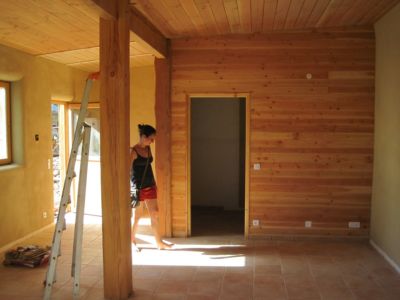 Sur support bois nous utilisons plutôt des peintures à l’huile : laques pour des menuiseries ou peintures à l’ocre pour des bardages ou autres revêtements bois.