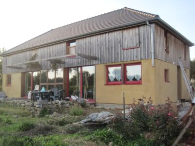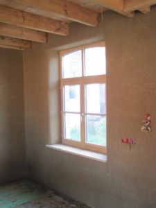 Les enduits peuvent être réalisés à base de terres argileuses du commerce ou du terrain (fondations, cuve, mare…).